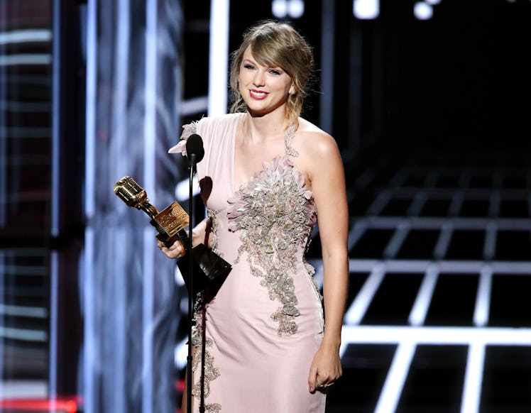 Swift sat next to Shawn Mendes, and during host Kelly Clarkson's opening medley of hits — which included Swift's song "Look What You Made Me Do" — she had the best reaction. She sang along with Mendes to her own song, while serving the same looks she does in her music video.