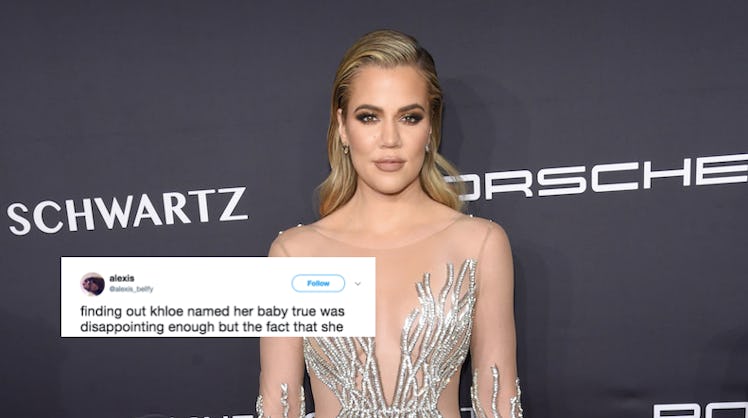 Wow you guys, it really happened. Khloé Kardashian and Tristan Thompson have finally told the world their daughter's name, and it is seriously GORGEOUS. The couple decided to name her True Thompson, and I think it is absolute perfection. But a lot of fans are shaking their heads, and not because of her first name (though some weren't totally in love with it). And these tweets about True Thompson and her last name are pretty harsh, fam.