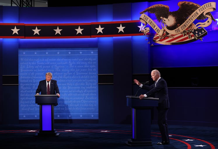 Following a chaotic inaugural debate on Sept. 29 that was characterized by more name calling, personal attacks, and interruptions (often coming from Trump) than policy discussions, the president's taxes came up once again during the final debate. While Trump no longer claimed that the bombshell Sept. 27 New York Times report that he'd only paid income taxes in five years out of the last 10 was incorrect, he said that he'd pre-paid "millions of taxes." During the debate, Trump also told Biden and moderator Kristen Welker that he'd been "treated very unfairly" by the IRS for being audited. The president also claimed that he believed the $750 he reportedly paid in taxes was a fee for filing his taxes.