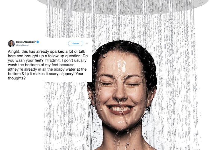 Then, things got wild. As a follow up to this debate on May 16, WIBV news anchor Katie Alexander tweeted to ask her followers if they wash their feet. She claims "they're already in the soapy water" so therefore, doing so isn't necessary. This sparked heated discussions across the social media site, and the responses might shock you.