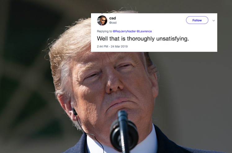 You can read the letter Barr submitted to the House and Senate Judiciary Committees here. Elite Daily reached out to the White House for comment, but did not immediately hear back. In any case, people were underwhelmed with the results.