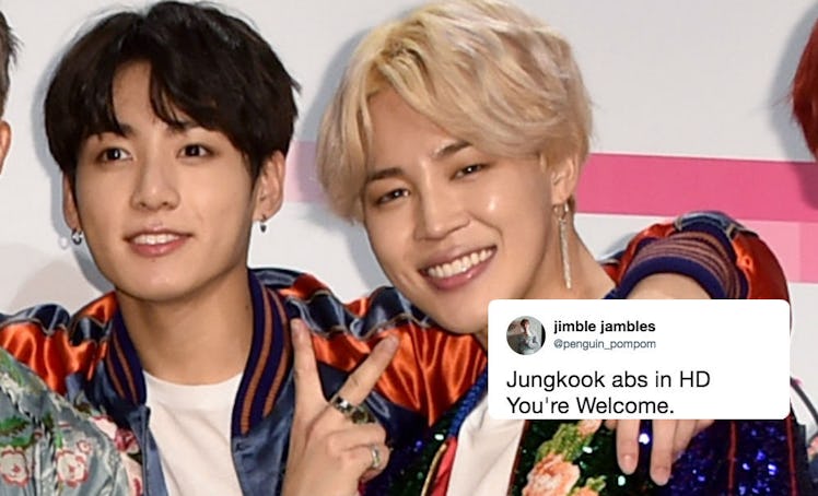 What a time to be a BTS fan, amiright?! If you're part of the K-pop craze, by now you've surely seen these videos of Jimin and Jungkook's abs. Right? Guys, right? If you haven't, I'm absolutely honored to be the one to introduce them into your stratosphere. BTS fans are losing their damn minds after the boys jokingly pulled up each other's shirts on stage at their recent concert in Chicago, and I can think of at least six reasons why. (Hint: They're all abs. That's an ab joke for you.)