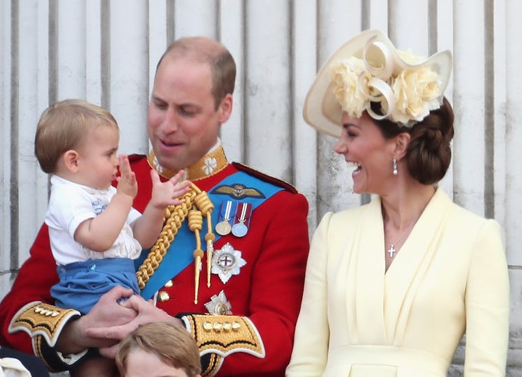 On June 8, Prince Louis exhibited some major star power in royal style at the annual celebratory parade. While Prince William and Kate Middleton's youngest child didn't ride in the carriage with his mom, Prince Harry, Meghan Markle, and Camilla, Duchess of Cornwall, the mini royal later made waves — quite literally — while posing atop the balcony at Buckingham Palace.
