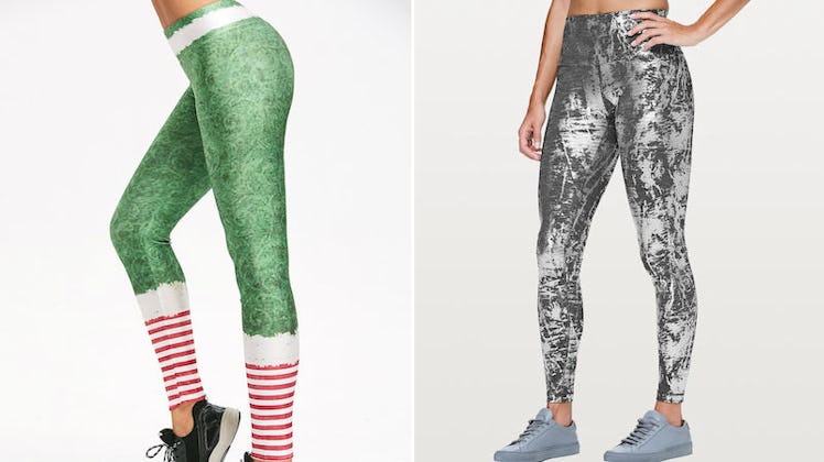 From gold metallic leggings to ones decorated with cats in Santa hats, you really can't go wrong with any of these fun legging and tight options.