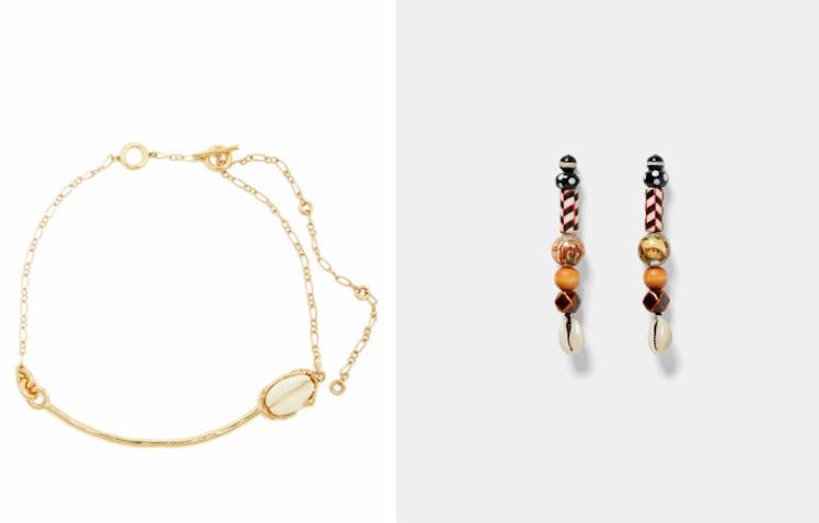 If you don't want a shell (or ten) to be the focal point of your accessorizing, try this chain necklace on for size. It features a single cowrie shell charm that's balanced out by others made from beads and metal. Bohemian cool at its best.