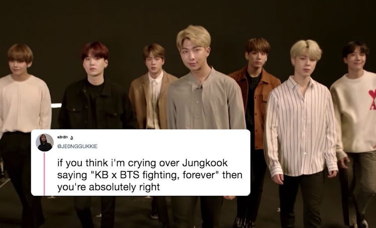 While I was busy ringing in the new year at a lame party with a glass of cheap champagne, K-pop superstars BTS were appearing in an ad for KB Kookmin Bank's online digital financial service, Liiv. One of us was clearly thriving on Jan. 1, 2019 and I'm pretty sure it wasn't me. Anyway, the 35-second spot, called "Play Digital KB," featured the seven-member band showing off the bank's Liiv digital banking platform and encouraging viewers to "go beyond the limit" with them. If you haven't seen this thing yet, you really need to watch it ASAP because it's freaking awesome. And we now have a new behind-the-scenes video of BTS' Kookmin Bank ad that's even better, since it highlights the fact that the chemistry between these seven boys is actually epic AF.