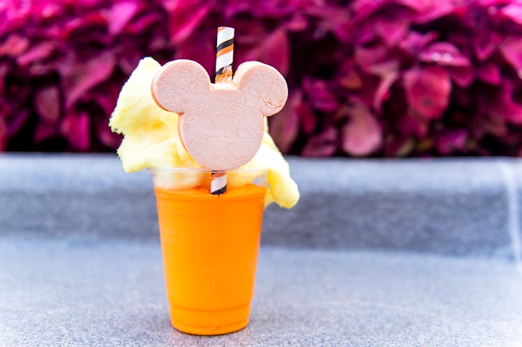 According to a press release, the Candy Corn Milkshake is topped with a Mickey-shaped marshmallow and cotton candy. As you can see, the shake itself is orange, and holds a striped straw that'll give you Halloween #vibes.
