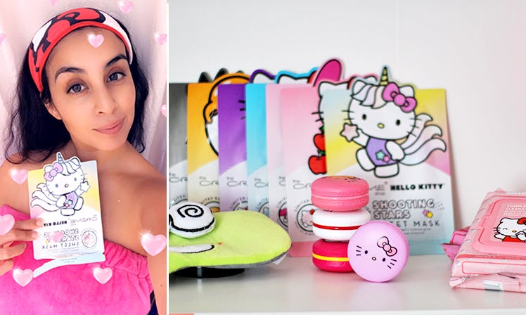 I was invited to preview the collection in person at the Crème Shop and Sanrio launch party and even before I walked in, I could hear editor squeals in the distance. They were all gushing in excitement over the massive collection, all inspired by our childhood Sanrio characters. The 46-piece collection includes everything from sheet masks and face wipes to bath bombs and faux lashes and we got to try everything. Here is a peek at the entire collaboration — oh, and get this: every item in the collection is under $10.