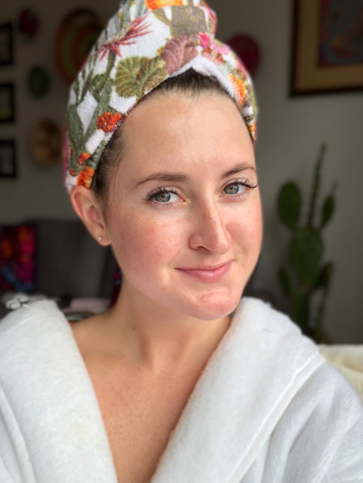 I first tried this mask right after stepping out of the shower. I used my new Louvelle RIVA Hair Towel Wrap ($30, louvellewear.com) to get my hair out of my face (but also just to feel fancy) before I slathered the mask onto my clean, dry skin. The first thing I noticed was how thick and luxurious this mask felt, and how I could just tell from the feel that it would be effective in moisturizing my skin. The instructions said to leave the mask on for at least 30 minutes, which is significantly longer than the usual five to 10 minutes other masks typically require.