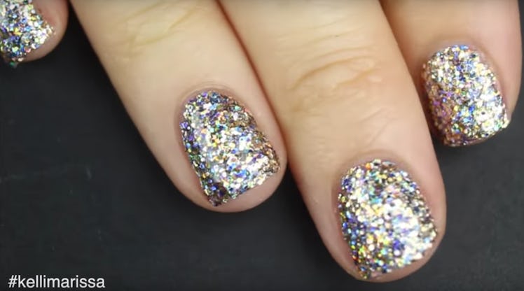 YouTuber Kelli Marissa must be my fairy godmother, because her tutorial on how to effectively apply glitter nail polish — meaning how to apply it in a way that negates all of the aforementioned issues and more — has just made my biggest beauty dream come true. Follow her how-to, and you'll be left with the flashiest fingertips you've ever seen that are perfect for festivals, nights out, and more. Read on for a step-by-step breakdown of the tutorial, and watch it in its entirety below.