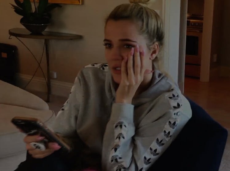 The spotlight seems to turn back on Jordyn and Tristan's rumored hookup when a slightly shaky camera narrows in on a weepy, shaken-looking Khloé. On the phone with mom Kris Jenner, Khloé says, "This is, like, unreal."