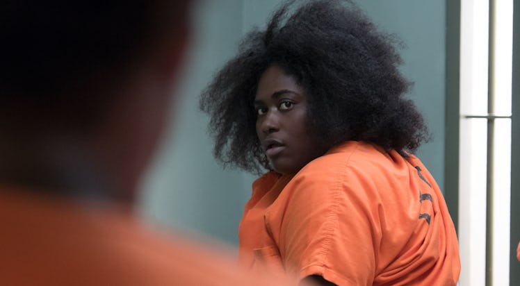 Before we jump into the new theory, let's talk about where we left off with Taystee at the end of the new season. Spoiler alert: This post will contain plot details from the Season 6 finale of Orange Is the New Black, so don't read on if you haven't finished the season yet. Taystee spends pretty much all of Season 6 getting the raw end of the deal. The government investigators decide to make Taystee the scapegoat for the whole Litchfield riot, and on top of that, she also has to take the fall for the murder of Desi Piscatella, since she was last seen pointing a gun to his head and nobody can prove who the actual killer is. Well... actually, Cindy and Suzanne do know that the emergency police team sent to end the riot is really responsible for killing Piscatella, but Cindy hides the truth for fear of repercussions for herself. And if things weren't bad enough for Taystee, she is also getting beat up by her new guards every day and the only guard that she thought was her friend turns her back on her.