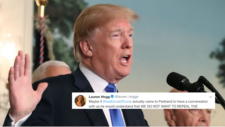 "Maybe if @realDonaldTrump actually came to Parkland to have a conversation with us he would understand that WE DO NOT WANT TO REPEAL THE SECOND AMENDMENT," freshman Lauren Hogg replied in a tweet. "Man, and they say millennials like to complain."