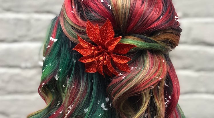 This Red & Green, Christmas-Inspired Hairstyle Is So Pretty, It Should Be On A Christmas Card