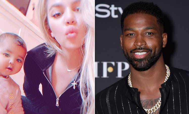 Khloé Kardashian and Tristan Thompson's relationship has been a giant question mark ever since Thompson reportedly cheated on Kardashian just before she gave birth to True. But the couple seems to be on great terms now, considering they're now posting family photos with little True together. Wednesday, Oct. 31, marked True Thompson's first Halloween, and the photo of Khloé Kardashian, Tristan Thompson, and True on Halloween is sure to make Khloé and Tristan fans burst with joy.