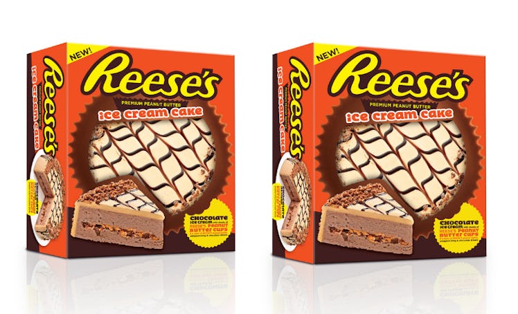 If you're like me and know that the best way to eat your Reese's Peanut Butter Cups is after storing them in the freezer, you'll appreciate the company's warm weather take on your favorite candy. IMHO, the only thing better than the drool-worthy combination of peanut butter and chocolate is adding some ice cream in the mix, and Reese's has got that covered with a cake that "features creamy chocolate ice cream, chunks of real Reese's Peanut Butter Cups, a layer of Reese's peanut butter and whipped icing with a Hershey's chocolate drizzle on top," according to the press release.