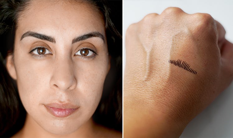 So, when the Salon Perfect On Point Tri-Tip Brow Marker ($5; Walmart) landed on my desk, I couldn't help but be intrigued by this triple-pointed felt tip. It looks interesting, but what can it do? Being the curious beauty editor that I am, I swatch a few strokes onto my hand, and wow! The trio of felt tips makes it look uniform and straight, just like a microblade would — and I draw them on in a third of the time. So far, so good.
