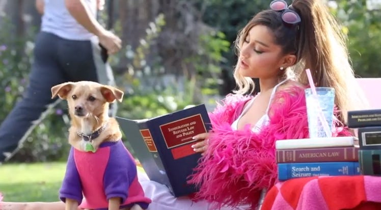 Not for nothing, Grande's sets look like a huge party. Fans even get to see the woman behind the camera, director Hannah Lux, who can't help but dance along to whatever tunes are bumping on set, too. While there are plenty of awesome cameos from actors and stage crew, I think we all can agree the real star here is the dog. The little pooch, Grande's own dog named Toulouse, is filmed hopping into Grande's convertible, chilling on a lawn chair, and floating in a pool. (I don't know what a person has to do to get hired as the animal watcher for an Ariana Grande music video, but I want in.)
