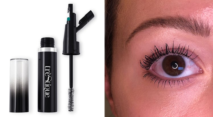 Launching today is the brand's Good Vibes Mascara ($25, trestique.com), said to be the very first two-in-one curler and lash-enhancing mascara. Hi, yes please! On one end of the cyllyindrical tube packaging is a lengthening and volumizing mascara infused with Malachite, and on the other end, a half-lash curler that takes up absolutely zero extra space in your makeup bag.