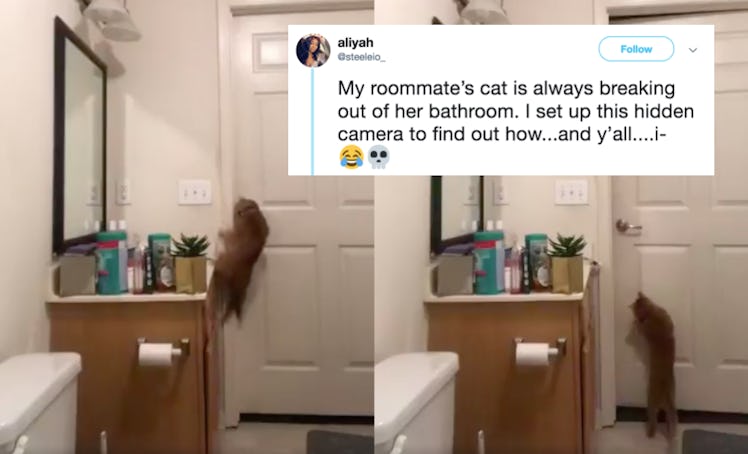 After Steele put a hidden camera in her bathroom and shared the feline footage on Twitter, other people started sharing their own mischievous cat videos — and some of them are pretty impressive.