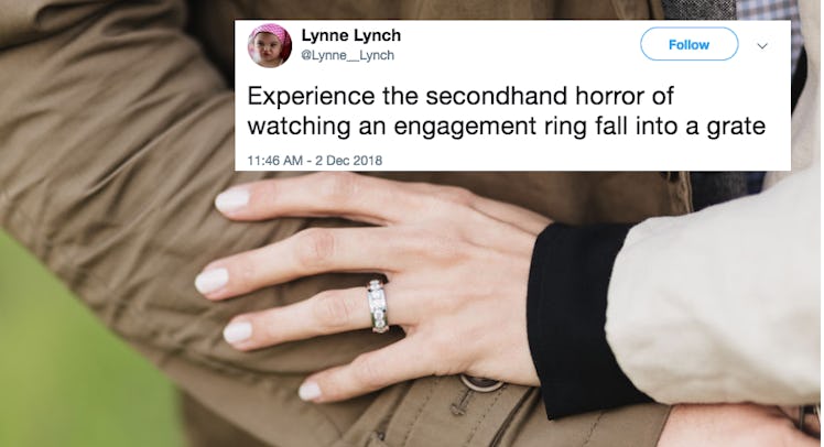 Imagine yourself proposing to the love of your life. You're in the middle of New York City's hopelessly romantic neighborhood known as Times Square. You slowly get down on one knee, and even though you're extremely nervous, you're excited nonetheless. After popping the question, your partner says yes (!!!) and while you're relieved and overjoyed, you proceed to drop the engagement ring right into a grate on the sidewalk. That *actually* happened to one unlucky couple, as shown this video of a man dropping an engagement ring in an NYC grate. It totally had all of Twitter (myself included) stressing out like nobody's business.