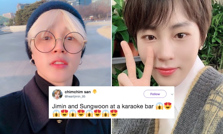 Few things delight me as much as celebrities being friends in real life. While I'm still new to the K-pop landscape, I can see that BTS' Jimin and former Wannaone member Sungwoon's friendship has fans swooning. The guys recently enjoyed a trip together where they took fun photos and even livestreamed a karaoke session. It was, like, almost too good to be true for their fans. The video of BTS' Jimin singing karaoke with Sungwoon is about as pure as it comes and proves that these two idols' friendship goes far beyond simple hugs and smiles at award shows. Fans are soaking it up.
