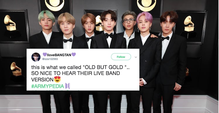 BTS performed a live version of "No More Dream" for a recent ARMYPEDIA event. In case you didn't know, ARMYPEDIA is an online hub where BTS fans can share their favorite memories and moments from the 2,000-plus days BTS has existed in the public sphere. You can think of it as a place where BTS fans can go to help engage with the band's history, post entries, and win rewards.