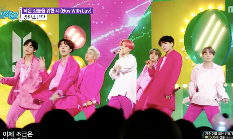 Buckle in, ARMYs. BTS has blessed the world with yet another perfect performance of their hit song, "Boy With Luv," and you're going to want to be sitting down for this one. This video of BTS' second Music Core performance is just as perfect as the music video for "Boy With Luv."