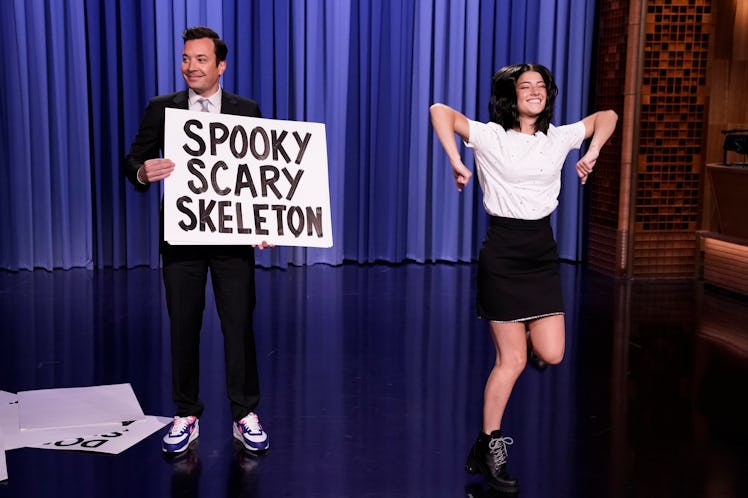 In the two minute Teaching a Dad 8 TikTok Dances segment, D'Amelio doesn't miss a beat as she teaches Fallon eight viral TikTok dances: "Don't Start Now," "Say So, Get Up," "The Git Up," "Spooky Scary Skeleton," "Hard Times," "Get Busy," and "Oh Na Na Na," which Fallon joined her for. Check it out for yourself below.