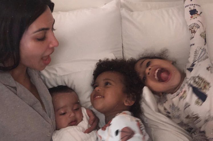 If you trek on over to Kim Kardashian's Instagram story, there's a bunch of videos showing Chi, Saint, and North playing with a mini car that Auntie Kourtney gifted Chi for her birthday. Chi and Saint are sitting in the car while North sits on the hood.