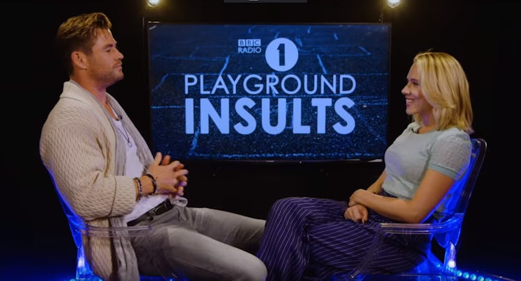 Chris Hemsworth and Scarlett Johansson may have worked nicely together in the latest Avengers installment, but that doesn’t necessarily mean they’re nice to each other all the time. As a matter of fact, they worked out all their offset issues during a recent appearance on BBC Radio 1. OK, I'm just kidding, these two love each other at all times. But you wouldn't know it based on the video of Chris Hemsworth and Scarlett Johansson insulting each other, which will probably make you laugh out loud!