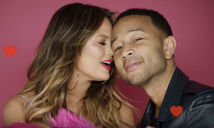 Teigen posted an adorable behind-the-scenes video from her and Legend's LOVE Magazine 2017 Valentine's Day video. In this outtake, the couple (who is expecting their second child, a baby boy, this year) sings Nat King Cole's "L.O.V.E." to each other. You know, the classic that goes, "L is for the way you look at me" and is in the beginning of The Parent Trap? (Don't even lie and say that's not the first thing you think of when you hear that song.) The video is as cute as it sounds. Teigen posted it to her Instagram and Twitter with a pink heart emoji as the caption.