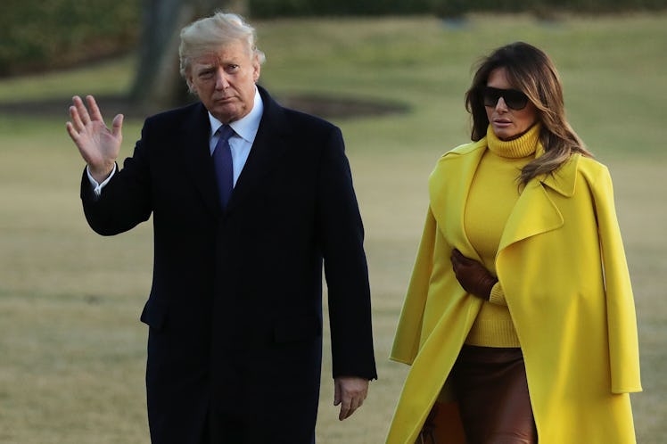 Monday's video was taken as the couple was leaving the White House for Ohio, where the first lady visited the Cincinnati Children's Hospital. The two can be seen crossing the lawn (where Trump stopped momentarily to address reporters), and boarding the plane. A few times, Trump makes a motion to hold Melania's hand — but his attempts prove unsuccessful — and the minute-long video ends without the couple making a connection. (Trump did manage to get a fistful of Melania's yellow coat sleeve, but that's probably not what he was going for.)