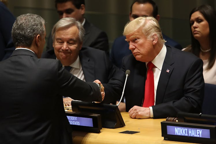 President Donald Trump is in New York today for the United Nations General Assembly (UNGA), and the world is watching to see how it all unfolds. Tuesday, Sept. 25 marked his second time making a speech before his fellow world leaders, after threatening to "totally destroy" North Korea at last year's speech. While things didn't go quite as planned the first time around, the video of Donald Trump getting laughed at in his UNGA speech this year is something.
