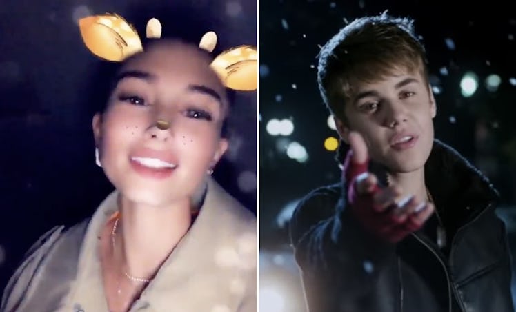 For some reason, knowing the 24-year-old music star and 21-year-old model are walking around as hubby and wifey makes the Christmas video tribute that much sweeter. Baldwin posted the gram on Monday, Nov. 19. It's unclear where she is, but it looks like she's rocking out to Bieber's 2011 hit in a car. Sure, she chose high AF voice filter along with the reindeer filter, but that's what makes it so festive you guys!