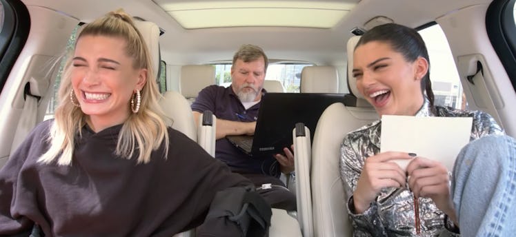 Justin Bieber doesn't think Kendall Jenner is ~cool~. Sad! Hailey Baldwin and Kendall Jenner are on the new season of Carpool Karaoke, and the trailer for the show's sophomore season features a clip of Baldwin and Jenner taking a polygraph test. And naturally, Jenner took this opportunity to ask Baldwin about her new fiancé (maybe husband?), but not the question you'd think she'd ask. The video of Hailey Baldwin taking a lie detector test about Justin Bieber reveals the Biebs' true feelings about Kendall Jenner, and it's causing drama! Just kidding, both Baldwin and Jenner thought the moment was hilarious.