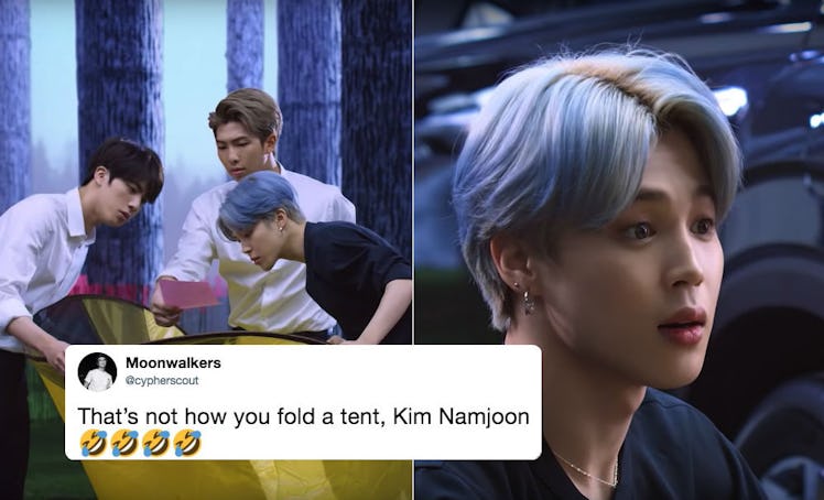 It makes sense that Jimin, RM, and Jin are the stars of the latest of the Palisade sub-unit ads, and their commercial does not disappoint. In it, the boys are trying desperately to figure out how to fold up a pop-up tent and failing miserably. If you're wondering how many BTS members it takes to fold up a pop-up tent, it's more than three, because Jimin, RM, and Jin never do figure it out.