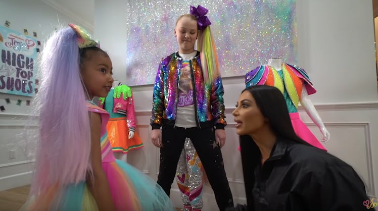 If you keep up with the Kardashians but aren't too hip to the coolest YouTube celebrities, then you might not have heard about North West and JoJo Siwa's recent announcement of a video collaboration. Well, let me catch you up. On March 23, Siwa announced at the Kids' Choice Awards that North, a huge Siwa fan, would be joining her for a video. Talk about worlds colliding. Now, you can watch this video of JoJo Siwa babysitting North West to see how the 5-year-old makes glitter slime, plays hide-and-seek, and busts a move while her super famous mom is out for the day.