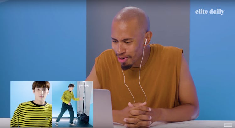 I hear Kalen Allen before I see him. I head over to Elite Daily's studio to introduce myself to the star, but he's in a room across the hall talking about Beyoncé. I immediately smile, already confirming for myself that he's the same hilarious, extroverted person in real life as he is in his viral reaction videos on YouTube. And this video of Kalen Allen reacting to TXT's Elite Daily Dance Challenge made it even more clear — I was laughing so hard I almost needed to leave the studio.