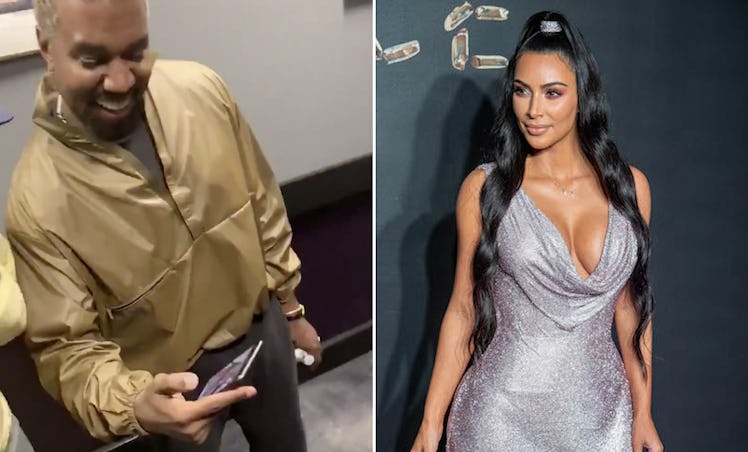 Using my context clues, on Sunday, Jan. 20, West was hanging out with 112's standing members, Mike and Slim. In the video, which was shared by TMZ and posted by Kim herself on Twitter, West FaceTime's his reality TV star wife. She answers by casually asking, "Hey, what's up?" At that point, 112 broke out singing one of their most romantic songs, "Cupid." You can just make out Kim's surprised face on West's phone as the song goes on. At one point, it sounds like she says, "I'm going to cry." Once 112 wraps up their riff, Kim plainly states, "This is one of the best days of my life. Oh my god."
