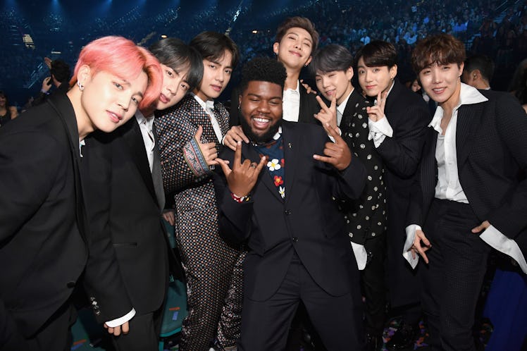 Meanwhile, Khalid also hung out with BTS backstage, where they got real cute and posed together. Khalid later shared the pics from that super cool encounter on his Instagram, along with the succinct caption "Rose Bowl."