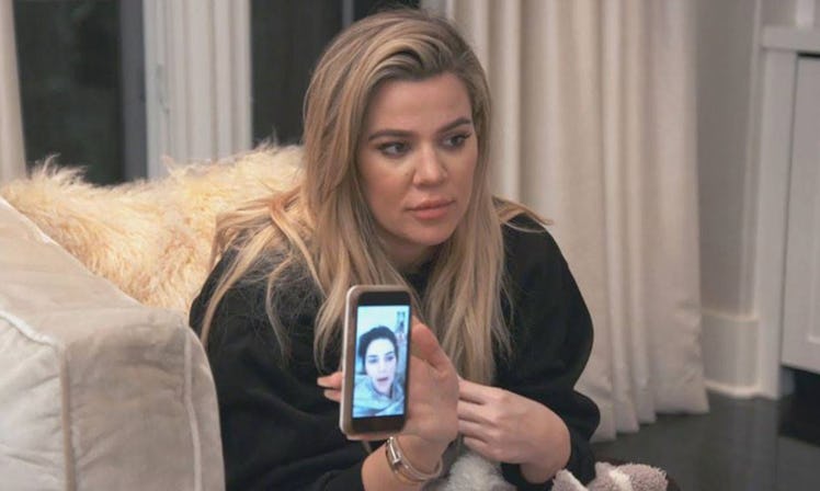 The last episode of KUWTK left off with palpable tension in the air. In this most recent clip, it sounds like Kourtney vented to her little sister Kenny over what's been going on, and together she and Jenner came up with some theories. Khloé explains she spoke with Kourtney on the phone who told her, "This isn't to criticize you or anything like that... me and Kendall were talking about you." According to Khloé, Kourtney told her, "You're really scared about how your life is going to turn out." Essentially, Kourtney and Kendall decided Khloé must be "acting out" because she is nervous about leaving her old life behind, presumably due to her incoming new baby etc. etc. Kim looks at Khloé in disbelief and says, "She's so off."