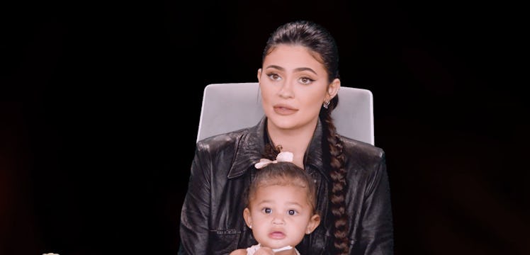 Keeping Up With the Kardashians star Kylie Jenner appeared on the season 17 premiere of The Ellen DeGeneres Show on Sept. 11 with her mom, Kris Jenner. The three legit icons sat around and chatted about KyKy's little girl Stormi (of course), while DeGeneres marveled over the youngest Kar-Jenner's quick trip from launching a beauty line to billionaire status in just four short years. Later in the ep, the makeup mogul brought out a surprise guest, and you have to see the video of Kylie Jenner and Stormi doing an interview together because it is next-level adorable.
