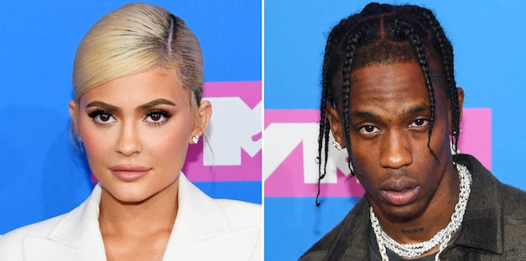 The 2018 MTV Video Music Awards brought us a lot of that #goodcontent last night, but one of the greatest gifts it gave us was all of our favorite celebrity couples appearing together and showing hella PDA. Like this video of Kylie Jenner and Travis Scott kissing at the VMAs, for example. When do we ever get to see that?! The answer is not quite often, my friends! Jenner made an appearance at the VMAs to support her boyfriend, who performed a medley of some of his songs from ASTROWORLD during the show.