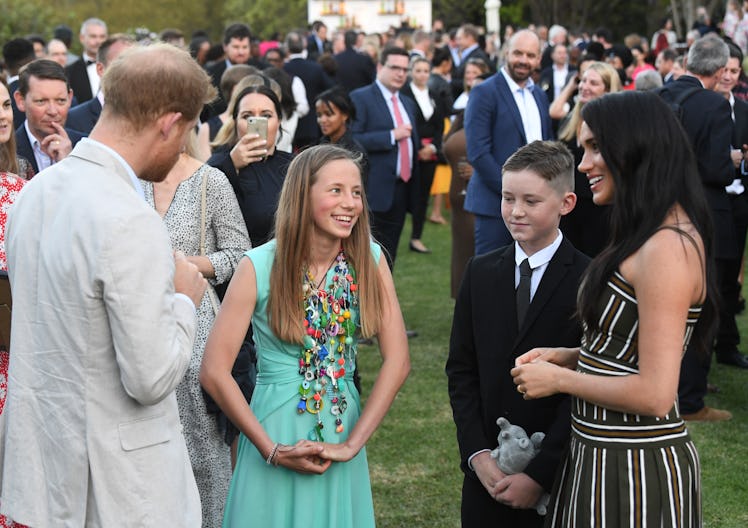 Meghan Markle and Prince Harry are currently making their rounds while on a tour of South Africa. During their stop at the residence of the British High Commissioner in Cape Town, the royal couple took part in a reception held in honor of young people, community, and civil society leaders, according to Entertainment Tonight. Meghan stopped to chat with Point of Light recipients Jade Bothma and Hunter Mitchell before Prince Harry decided to join his wife and speak with the young adults. This is when the gloriously sweet moment occurred.