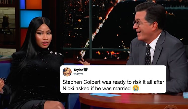 Nicki Minaj Rapped A Sexy "Barbie Dreams" Verse For Stephen Colbert That Had Him Speechless
