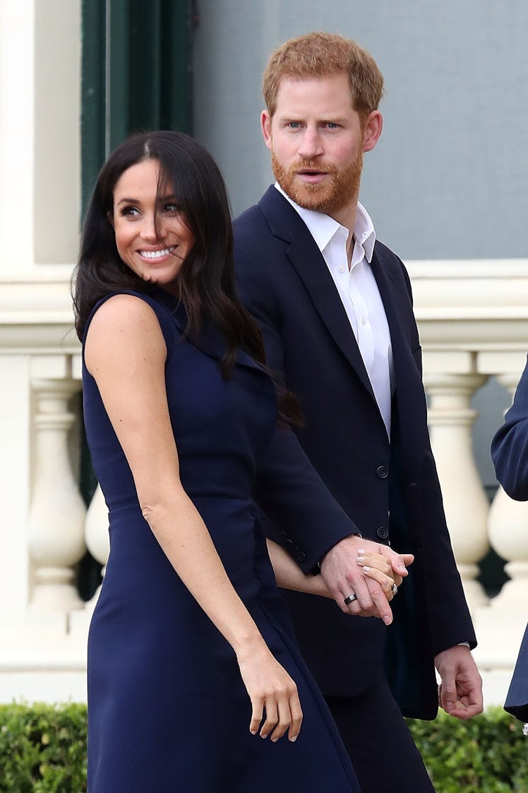The Duke and Duchess of Sussex, Prince Harry and Meghan Markle are on a roll as they bounce from engagement to engagement on their first tour together as husband and wife. The two are visiting the countries Australia, New Zealand, Fiji, and Tonga and cameras are catching almost every moment. Most recently, they caught a sweet exchange between Harry and Meghan that has fans dying. There's a video of Prince Harry holding Meghan Markle's hand with both of his hands and romantic royal followers are losing it. No doubt about it, these two are the real deal.