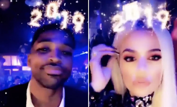 Meanwhile, Khloé was only sharing the good parts. Both she and Tristan shared photos of the two snuggling up, smiling, and even kissing. She also shared this NYE filtered video of herself and Tristan clubbing. In it, Tristan yells, "Happy New Year!" and Khloé can be heard asking, "That's it?" This prompted him to add, "God bless everybody. Don't drink and drive."
