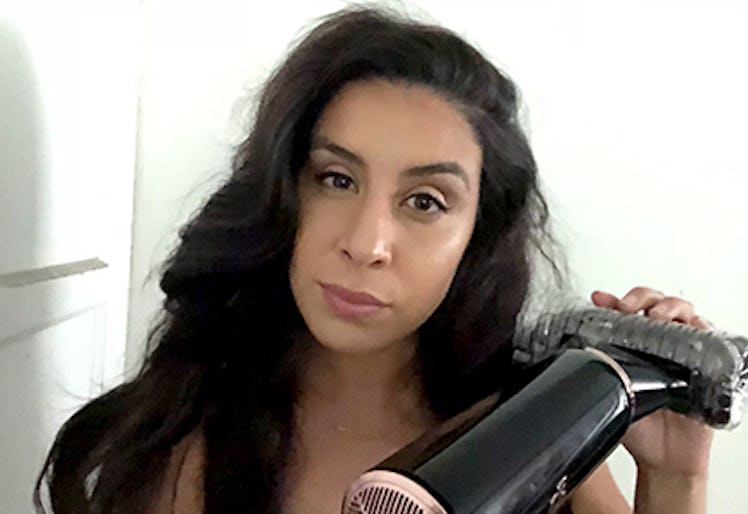 On to plan C: I thought to myself, "OK, you can do this. Why don't you cover the top with your hand, turn the dryer on the cool setting long enough to get some momentum, then once your hair starts spinning, hit it with the heat and take your hand off?" This internal self-to-self advice sounded great at the time. Though the hack clearly was not as simple as I saw on Instagram, I felt like I'd figured it out at that point, right? Wrong!