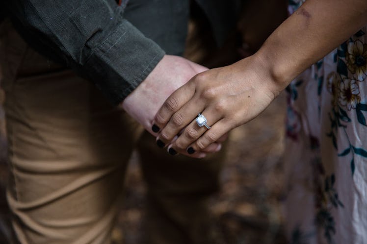 On Saturday, Nov. 3, Twitter user, @goodcalljenjen (aka Jenna) came in clutch with one of the greatest favors known to man (and especially woman)-kind: she filled in with her impeccably manicured hand for her cousin's engagement photos. Apparently, her cousin's boyfriend proposed, but unfortunately, her cousin's nails weren't in tip top shape at the time. So, Jenna put the engagement ring on, and placed her hand in front of her cousin's face in the photoshoot, to make it look like her cousin's manicured hand, with a sparkly little ring on it. It made for the most fabulous and perfect engagement pics, and if you think about it, Jenna is the pal (and cousin) that everyone needs in their lives. For real.